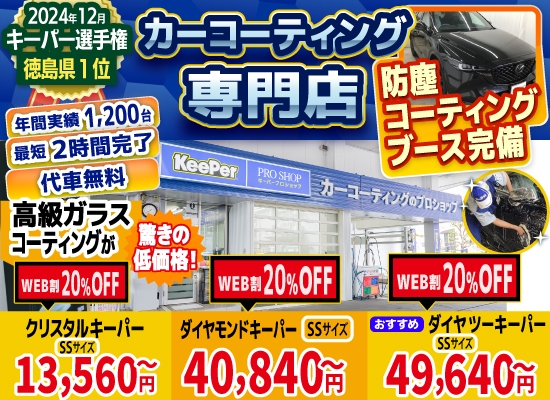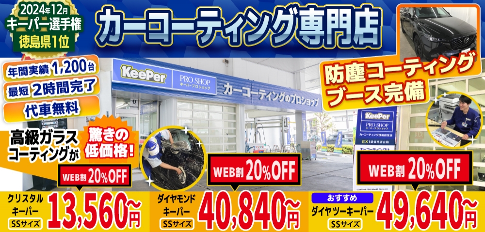 私達キーパープロショップは、徳島市・阿南市・鳴門市・吉野川市・小松島市・阿波市・藍住町エリアのカーコーティング専門店として、日本ダントツのカーコーティングブランド、キーパープロショップとして認定を受けております!